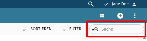 In diversen Modulen (Menü-Punkten) ist eine separate Suche integriert. Diese ermöglicht es, innerhalb des geöffneten Moduls nach Inhalten zu suchen.